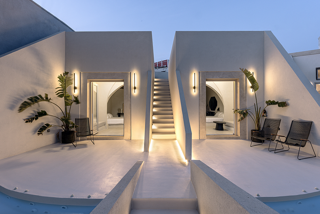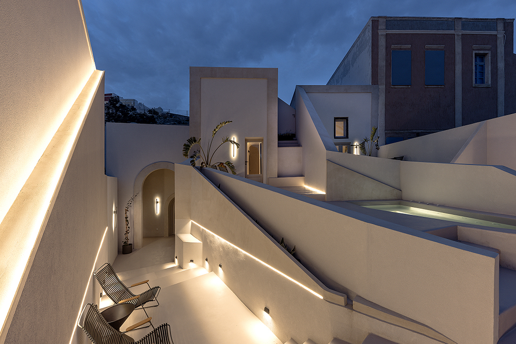 The property is located in the traditional settlement of Pyrgos Santorini and is part of a 1876 mansion building. The project is about the reconstruction of two excavated spaces where the domestic staff of that time was housed, the reconstruction of two stables and a building construction. After a research of old photographic archives, it was found that during the 1970s interventions and additions were made which altered the morphology of the facades and interiors. The current situation was completely opposed to the most basic architectural element of Pyrgos, that of homogeneity and unity. An obsession for the absence of serious class differences. Characteristic of “the case di Venezia” during the first and second period of the Venetian dominion on the island of Santorini.